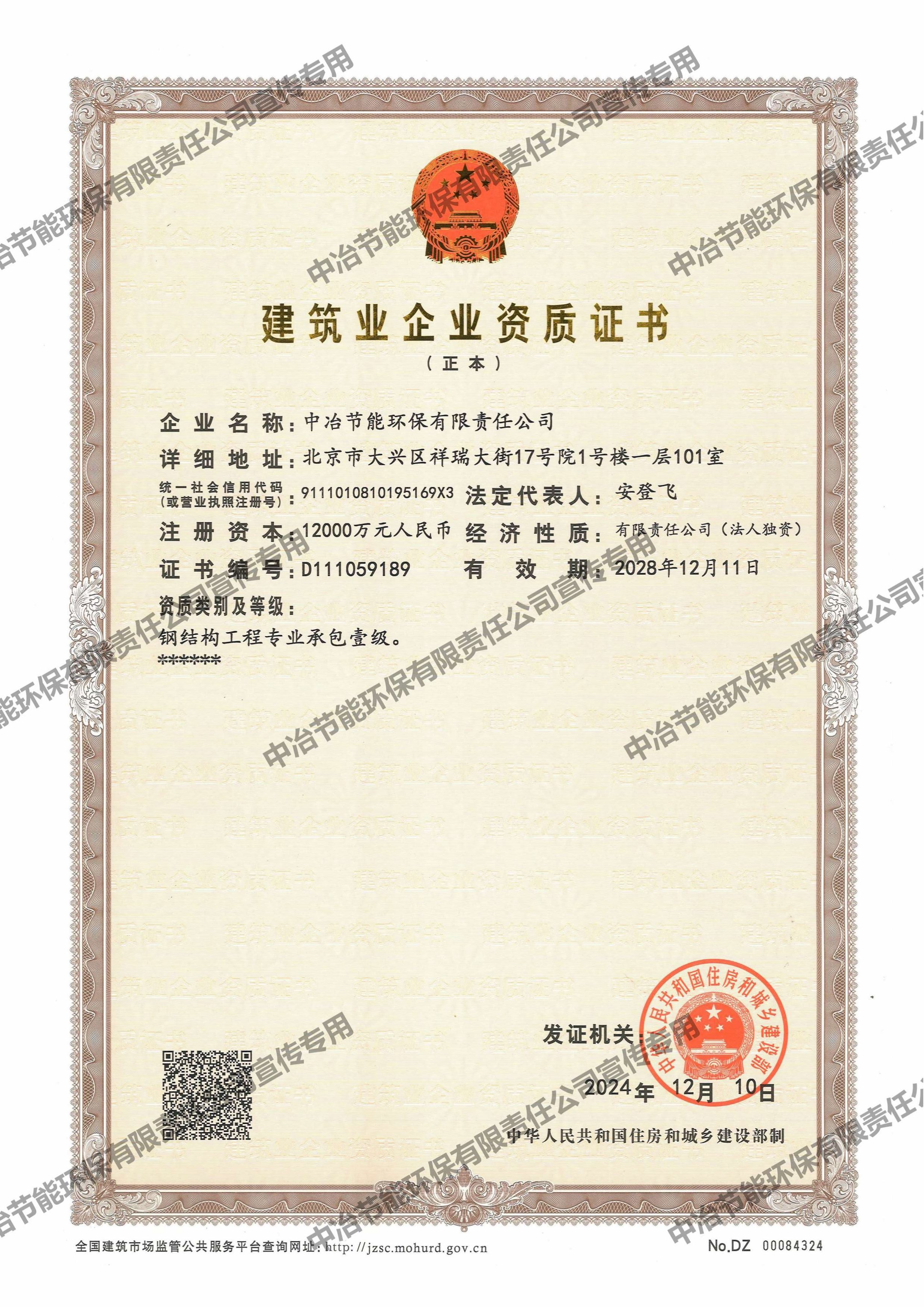 建筑業(yè)企業(yè)資質(zhì)證書(shū)(鋼結(jié)構(gòu)工程專(zhuān)業(yè)承包壹級(jí))